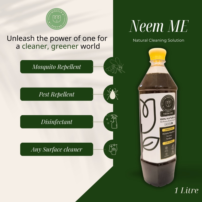 Neem Me is a bio enzyme made out of neem leaves, jaggery and water, fermented for three months and then sieved. Best fertilizer to your plants and keeps the insects and pests away. 👉Use it as a multipurpose cleaner and disinfect various surfaces. 👉Can repel small insects, ants and cockroaches at home. 👉Acts as a fertilizer to the plants, wonderful bloom nutrient.
